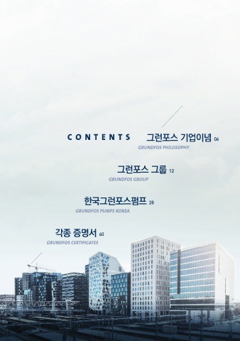 그런포스 그룹 C O N T E N T S 그런포스 기업이념 06 GRUNDFOS PHILOSOPHY 그런포스 그룹 12 GRUNDFOS GROUP 한국그런포스펌프 28 GRUNDFOS PUMPS KOREA 각종 증명서 60 GRUNDFOS CERTIFICATES