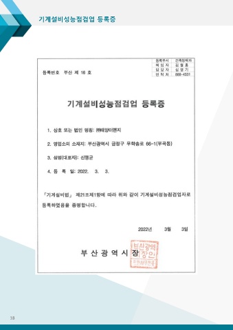 기계설비성능점검업 등록증 18