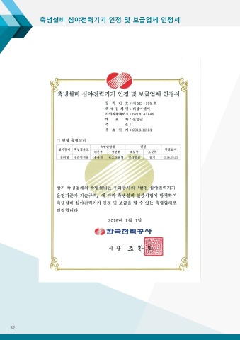 축냉설비 심야전력기기 인정 및 보급업체 인정서 32
