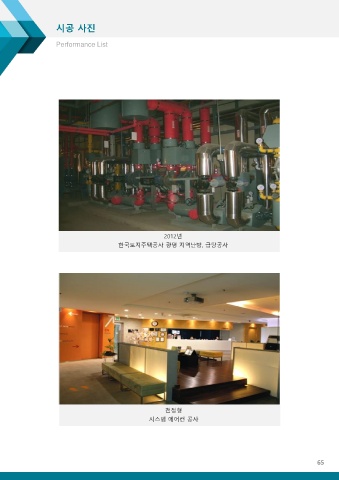 시공 사진 Performance List 2012년 한국토지주택공사 광명 지역난방, 급탕공사 천정형 시스템 에어컨 공사 65