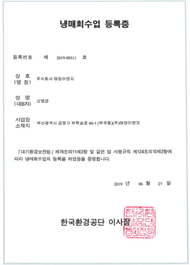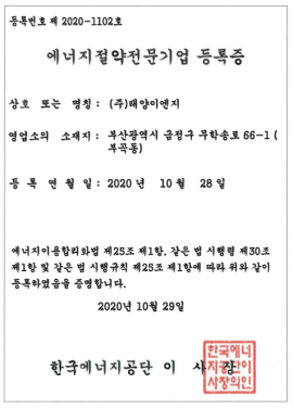 축냉설비 심야전력기기 인정 및 보급업체 인정서